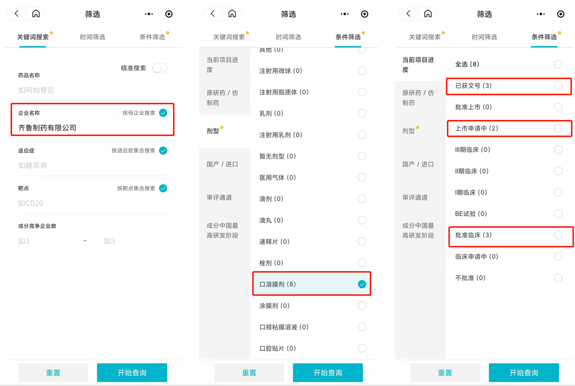 多條件組合篩選,清晰展現(xiàn)在研情況