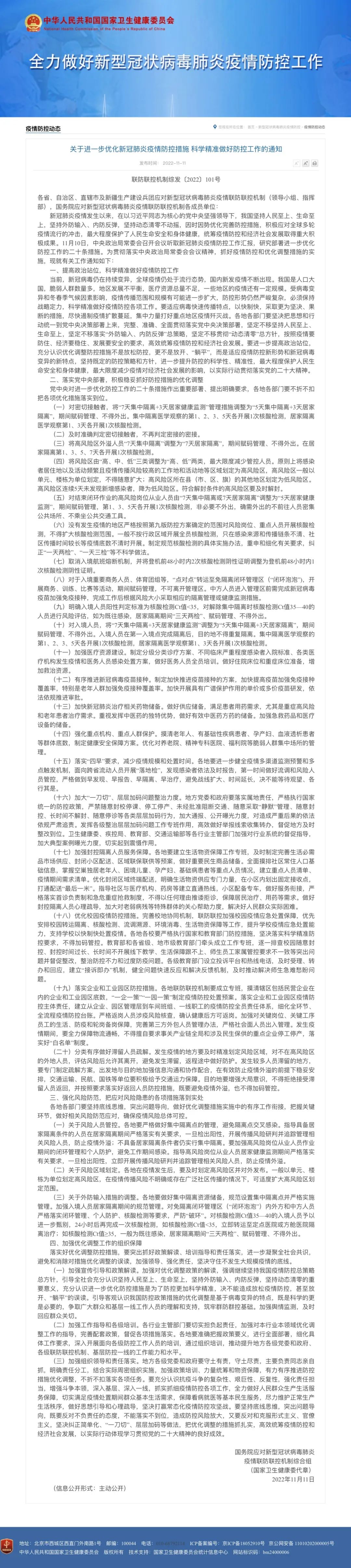 今天(11月11日),國務(wù)院聯(lián)防聯(lián)控機(jī)制綜合組發(fā)布《關(guān)于進(jìn)一步優(yōu)化新冠肺炎疫情防控措施 科學(xué)精準(zhǔn)做好防控工作的通知》,公布了關(guān)于進(jìn)一步優(yōu)化防控工作的二十條措施(全文附在文末)。