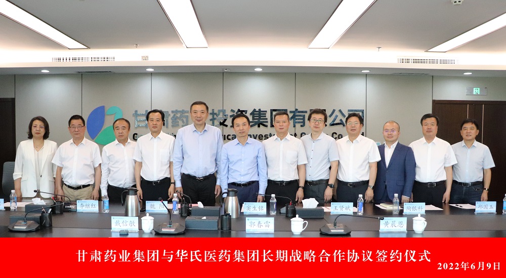 2022年6月9日,甘肅藥業(yè)投資集團(tuán)有限公司與海南華氏醫(yī)藥控股集團(tuán)有限公司在蘭州舉行長期戰(zhàn)略合作協(xié)議簽約儀式。集團(tuán)公司黨委書記、董事長魏陽,全國工商聯(lián)醫(yī)藥商會常務(wù)副會長、海南華氏醫(yī)藥控股集團(tuán)有限公司董事長戴信敏代表雙方簽署協(xié)議。簽約儀式由集團(tuán)公司黨委副書記、總經(jīng)理竇生銘主持。